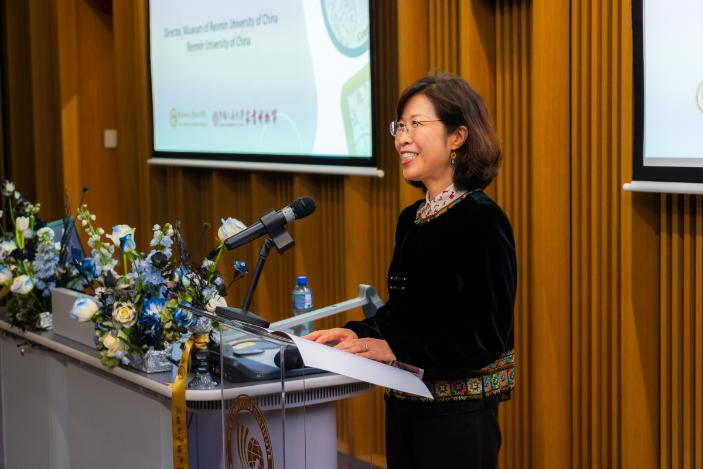 中国人民大学博物馆馆长李贞实介绍了本次展览的总体情况,并对都柏林大学和孔子学院的支持表示感谢。她表示,人大博物馆一直重视国际文化交流,与爱尔兰文博界保持着良好合作。去年为纪念中爱建交45周年,博物馆曾举办爱尔兰著名当代艺术家史蒂芬·劳勒作品展,30幅画作在馆内展出,深受中国观众喜爱。家书是人大博物馆的特色馆藏之一。本次展览从馆藏8万余封家书中精选出32组、共55封,以原大仿真复制形式展出,采用镜框装裱和展柜陈列,并配以人物照片与背景故事。展品时间跨度一个多世纪,从清朝晚期到20世纪90年代,形式多样,包括毛笔竖写、钢笔横写及图文结合的家书,展现了真挚的人间情感与温馨的家庭文化,呈现出中国家书文化的独特魅力。