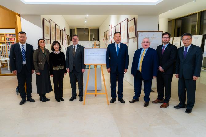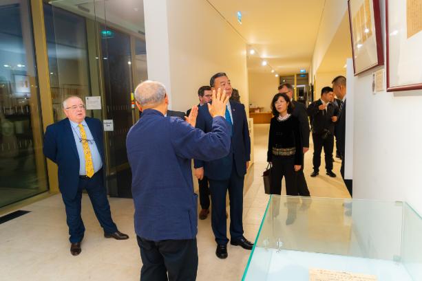 11月10日下午,由爱尔兰都柏林大学孔子学院与中国人民大学家书博物馆共同主办的“此致,敬礼——中国传统家书展”在都柏林大学孔子学院开幕,中国人民大学党委书记张东刚,都柏林大学常务副校长柯林·斯科特(Colin Scott),爱尔兰国会议员、前众议长肖恩·奥法尔盖尔(Seán Ó Fearghaíl),中国驻爱尔兰大使馆一等秘书朱喜坤,都柏林大学中国研究院院长王黎明、全球合作战略主任迈克·塔尔博特(Mike Talbot)、孔子学院爱方院长王艳玲及中方院长郑适,中国人民大学博物馆馆长李贞实、发展规划处处长贾俊雪、国际交流合作部副部长张大淼(主持工作)、党政办公室副主任林翌甲等参加活动。