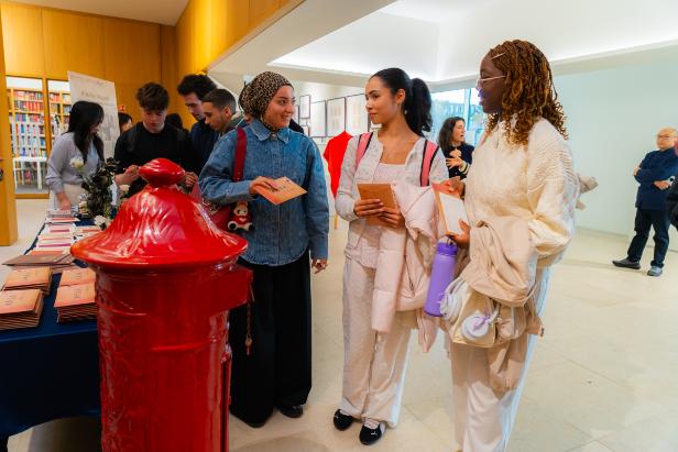 开幕式结束后,嘉宾共同为展览揭幕,并在孔子学院大厅参观展览。现场观众通过家书原件、影印件与背景故事,感受信笺间流淌的深情厚意。活动还特别设置了“写家书”互动区,来宾可现场书写明信片寄语,体验传统“家书”文化的传情之美。