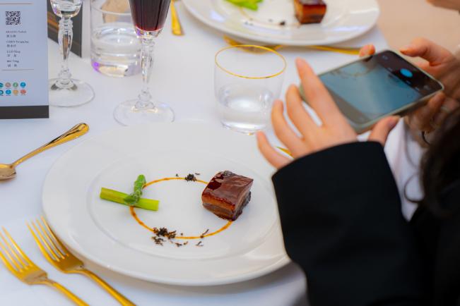 “徽式面包篮”与“迎客什锦拼”寓意“徽味迎宾”,以黄山山水为形,以徽墨、徽茶为意;“轩辕牛腱汤”与“徽州香猪肉”浓郁醇厚,尽显徽菜注重火候与本味的传统;“徽式银鳕鱼”与“白玉羊肉盅”清新温润,传递山水间的灵气与人情;“非遗鱼灯饭”与“黄山甜果汇”则以寓意吉祥的造型与清雅的甜味,为整场盛宴画上圆满句点。