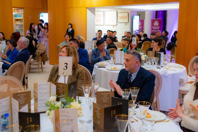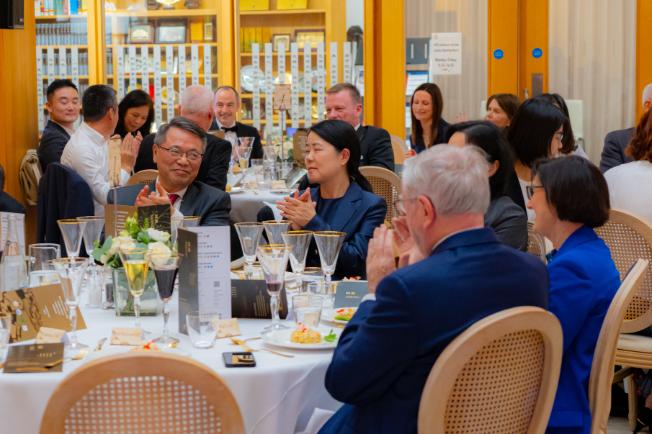 在晚宴过程中,爱尔兰前驻华大使康宝乐阁下即兴发表了真挚而生动的讲话。他以亲身经历讲述了四十多年前作为年轻外交官在中国的难忘回忆——他在黄山访问时感受到中国山水的壮丽与文化的深厚。他风趣地回忆起当年登山途中偶遇一位在中国学习艺术的爱尔兰画家的故事,这段跨越时空的缘分成为他外交生涯中最温暖的回忆,也见证了中爱两国人民之间的深厚友谊。他感慨地说:“无论你走到世界的哪个角落,总能遇见友谊的延续。”这段真挚的讲述引起现场嘉宾热烈掌声,将晚宴气氛推向高潮。