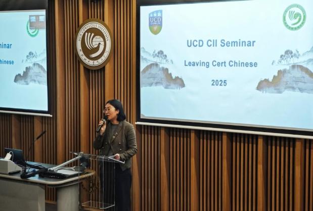 都柏林大学孔子学院外方院长王艳玲女士发表致辞。她首先热烈欢迎到场的学生和家长,肯定了高考班教师们的辛勤付出,对他们在帮助学生取得优异的中文高考成绩方面所作的努力表示感谢。同时,她也对学生们寄予殷切期望,希望大家在未来的学习中继续努力、不断进步。