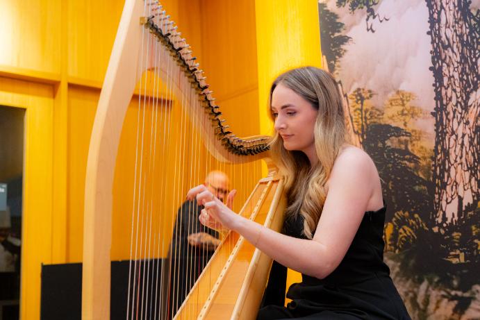 In addition to fine cuisines, the banquet featured captivating performances by young artists from both nations, enriching the evening with profound artistic resonance. Irish harpist Jennifer Leahy performed graceful and romantic melodies that floated like a gentle breeze, while the Chinese traditional ensemble Lanyin presented an exquisite performance with the guzheng, pipa, and bamboo flute. The guzheng's refined elegance, the pipa's delicate intonation and the bamboo flute's luminous vitality collectively painted a vividly poetic oriental tableau.